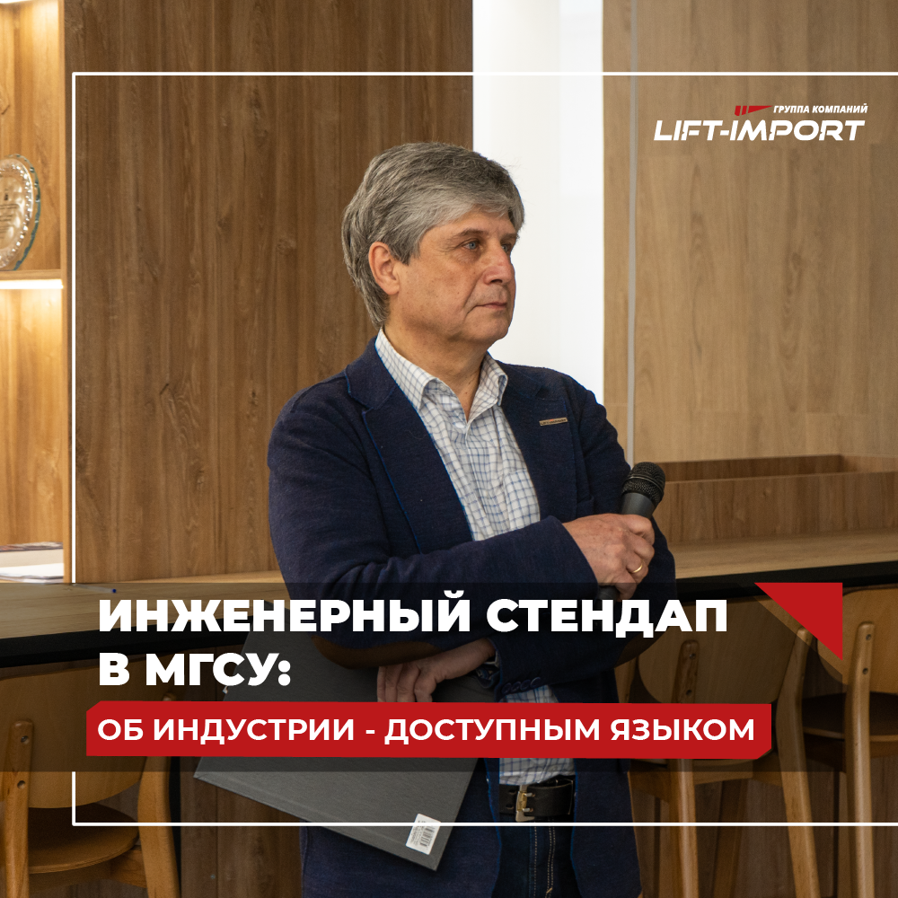 28 марта в Национальном исследовательском Московском государственном строительном университете (НИУ МГСУ) состоялся инженерный стендап «Всё, что вы хотели знать о лифтовой индустрии и людях, которые занимаются ее развитием». О ситуации в лифтостроительной отрасли, инновациях и уникальных разработках, а также об особенностях профессии студентам и сотрудникам кафедры «Механизация, автоматизация и роботизация строительства» НИУ МГСУ рассказали представители лифтовой индустрии.