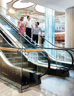 Помимо, в современных гостиницах и отелях особые требования предъявляются дизайну эскалаторов. Важно, чтобы оборудование вписывалось в общий интерьер и архитектурную концепцию сооружения. Для таких случаев крупные производители эскалаторов и траволаторов предлагают индивидуальные решения. Клиент может выбрать цвет и материалы для отделки ступеней, поручней и балюстрады, а также один из представленных вариантов освещения.